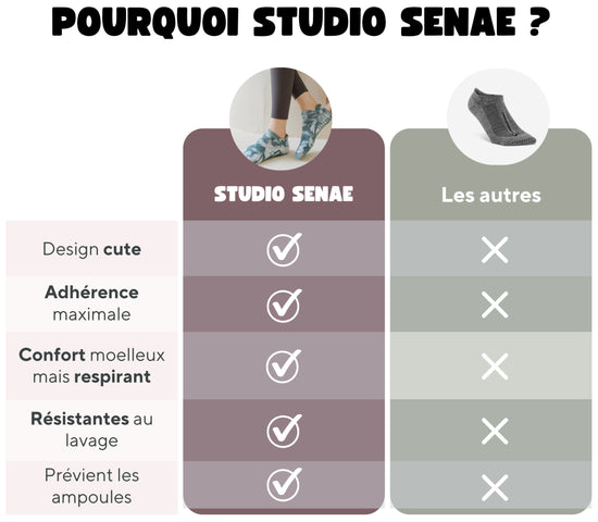 Pensées pour les femmes qui vivent chaque séance comme un moment à elles, les chaussettes antidérapantes studio senae allient adhérence, confort et style.